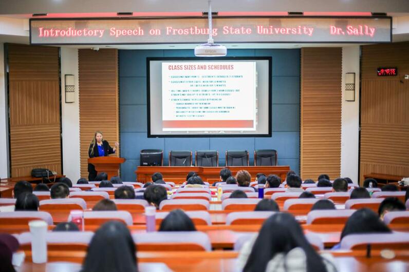 3月2日晚,来自合作学校美国弗罗斯特堡州立大学(Frostburg State university, FSU)的Sally Stepensen教授, 在学校F201为我院金融学本科项目学生开展了一场内容丰富、形象生动的讲座。此次Sally教授将在我校进行半年的教学,主要以第二课堂形式,为学生开展系列专题讲座。首次讲座的主题是关于FSU的整体介绍,重点介绍在FSU的学习与生活。Sally教授通过大量的图片和文字,向同学们展示了美丽的弗罗斯特堡州立大学及其周边环境,展现了四季变换中的校园美景,尤其是重点讲到在FSU学习的模式、资源与方法。Sally教授鼓励同学们努力学习,迎战托福考试,做好充分准备,顺利赴美学习。讲座中,16级金融学本科项目学生黄鸽平、陈思成、彭垚臻等同学与Sally教授积极互动,就美国学习与深造进行了现场交流,会场气氛活跃,同学们的发言也展示了我院金融学本科项目学生良好的学习氛围与综合素质。