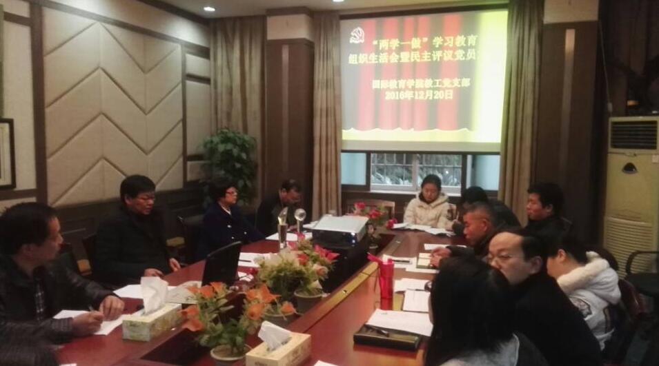 12月20日下午,国际教育学院教工党支部召开“两学一做”专题组织生活会暨民主评议党员大会,杨建同志主持。