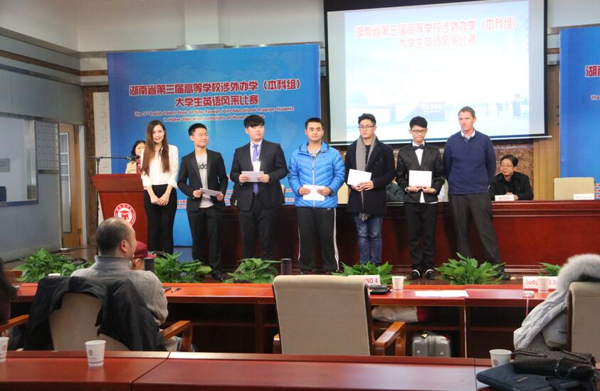 2016年11月26日-27日,由湖南省教育厅主办,湖南商学院承办的湖南省高等学校涉外办学(本科组)英语风采比赛在我校隆重举行。中南大学、中南林业科技大学、湖南农业大学、湖南商学院等全省有中外合作办学机构、中外合作办学本科项目的高校汇聚一堂,17支参赛队同场竞技,精彩纷呈,彰显我省中外合作办学风采与良好的发展态势。不同于前两届的赛事安排,此次比赛采用了全新的比赛形式,分为“小组讨论”和“才艺展示”两个环节,分别占60%、40%的分值。经过公平、公开、公正的角逐,我校中美合作金融学本科项目参赛队脱颖而出,与湖南农业大学参赛队并列团体一等奖,我校三位参赛选手陈思成、刘伊诺、杨楚宁分别获得个人一等奖、二等奖和三等奖。