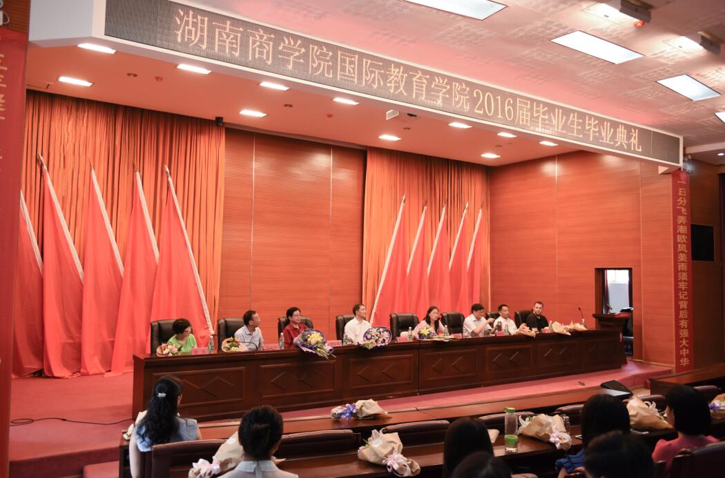 6月20日下午,国际教育学院在学校多功能报告厅隆重举行2016届毕业生毕业典礼。校党委书记唐亚阳教授、校长陈晓红教授、副校长曾伏秋教授出席典礼。典礼由国际教育学院院长张漾滨教授主持。