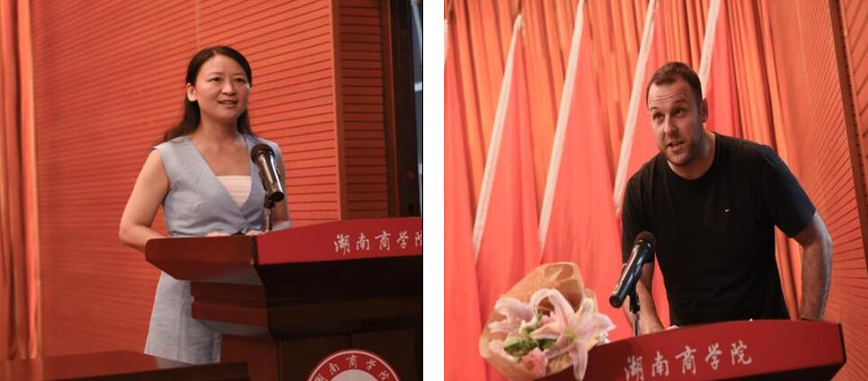 外教代表David、教师代表陈咏涛发言,代表全体老师对2016届毕业生顺利完成学业表示祝贺!回忆了与同学们一起摸爬滚打的温馨岁月,表达了对毕业生的良好祝愿和不舍之情,寄语毕业生们努力奋斗、创造属于自己的人生辉煌。