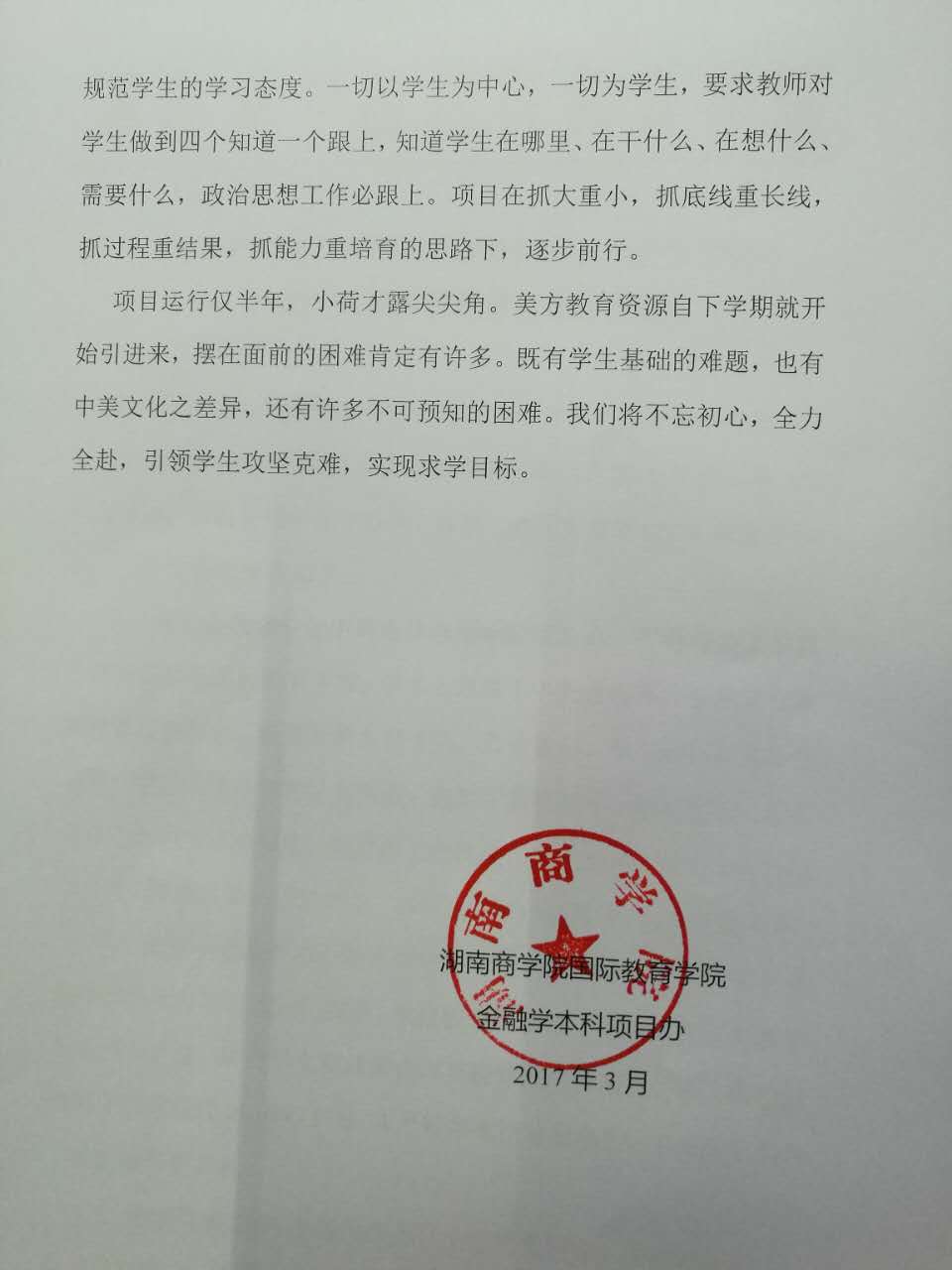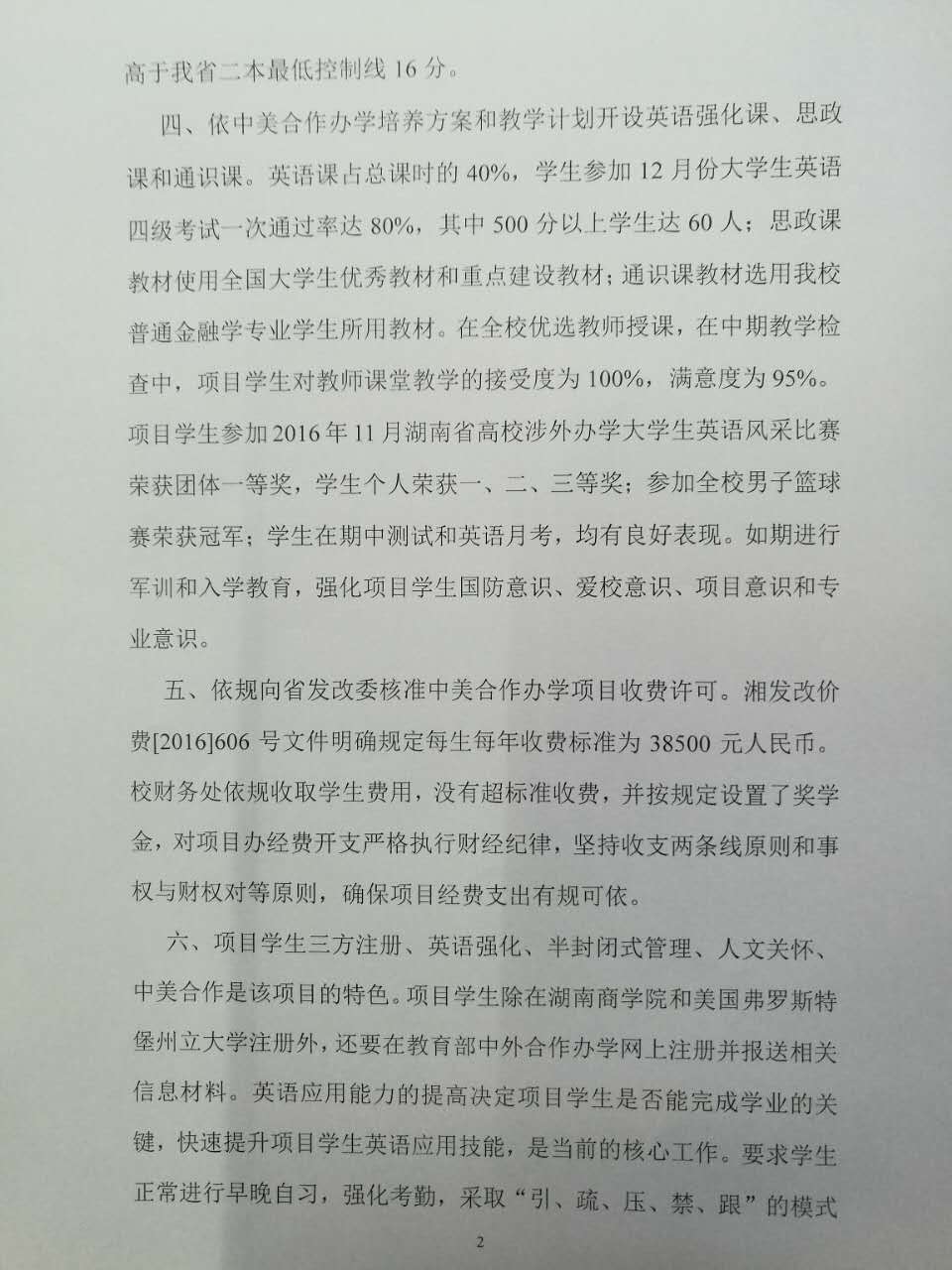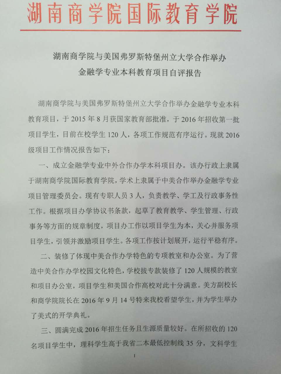 湖南商学院与美国弗罗斯特堡州立大学合作举办金融学专业本科教育项目2016年年度报告